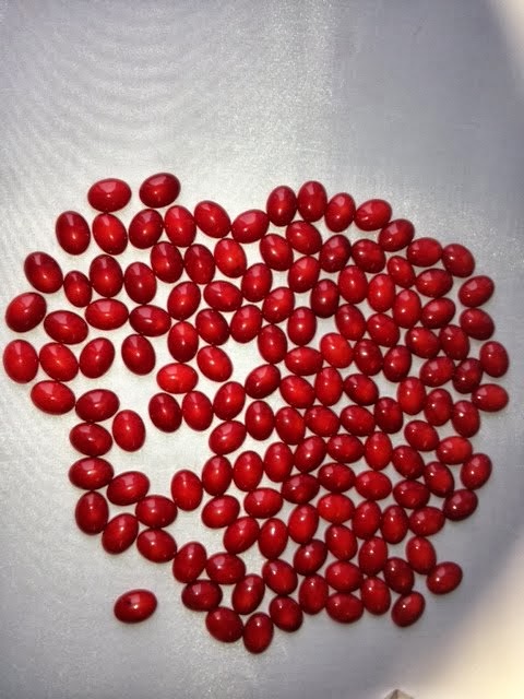 Red coral jewelry cabochons in calibrated round and oval shape.